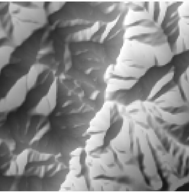 The 25-meter resolution was obtained by projecting the original DTED2 data from geographic coordinates on the WGS84 ellipsoid into rectangular coordinates (1970 Stereographic Projection).